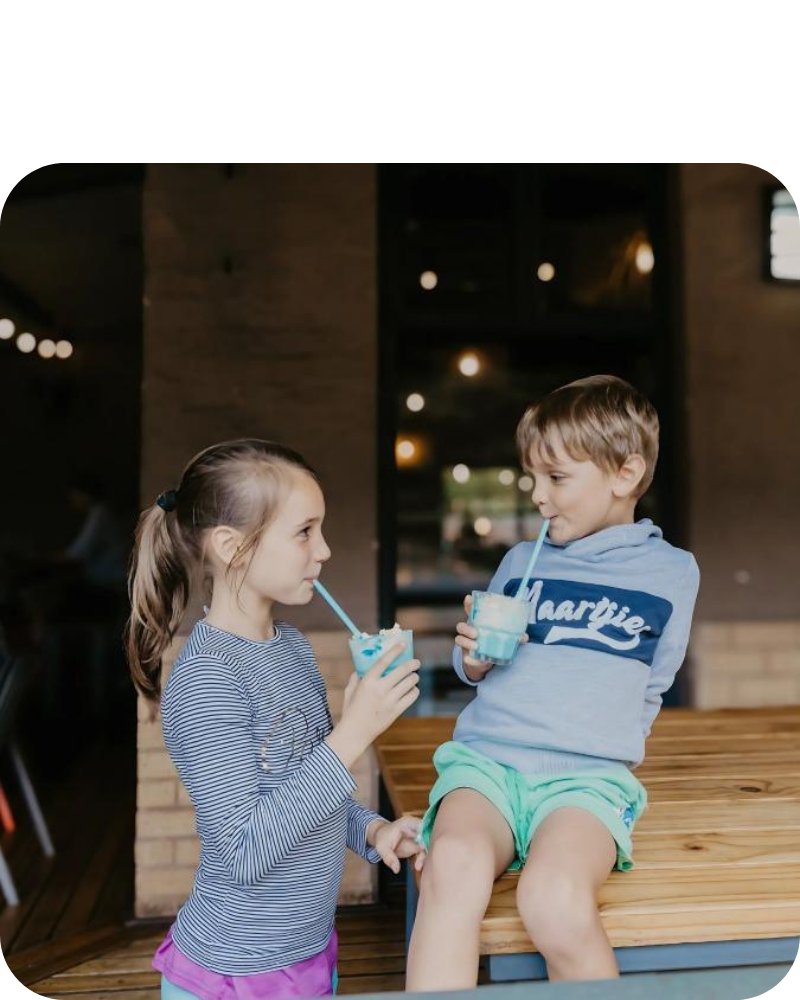Met ons familie georiënteerde beleid is almal welkom. Of jy binne of buite wil sit hang van jou af en daar is meer as genoeg speelplek vir die kleingoed. Groter groepe kan ook akkomodeer word – onthou net op die posduif te stuur met jou bespreking!